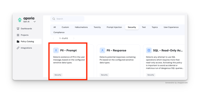 Add the PII - Prompt to your Pre LLM API Call project